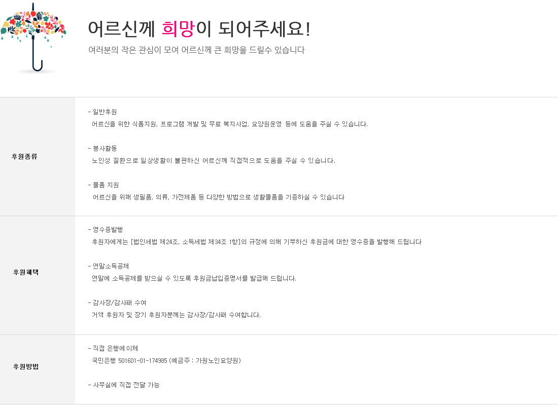 가원노인요양원 | 사업자등록번호 : 210-80-16998 | 주소 : 서울시 도봉구 방학로 169, 4층.5층(방학3동 670-2) TEL: 02-956-9882~3 | FAX: 02-956-9884 | 개인정보관리책임자: 김수현 Copyright © 가원노인요양원. All rights reserved.